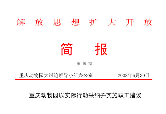 在“解放思想、扩大开放”大讨论“金点子”活动中,职工提出了许多很好的建议,我园领导高度重视,对建议逐一斟酌,对切实可行的加以采纳并付诸实施。2008年6月20日以来,针对“加强职工专业知识和操作技能培训,提高业务能力”建议,我园逐步组织职工进行业务培训。