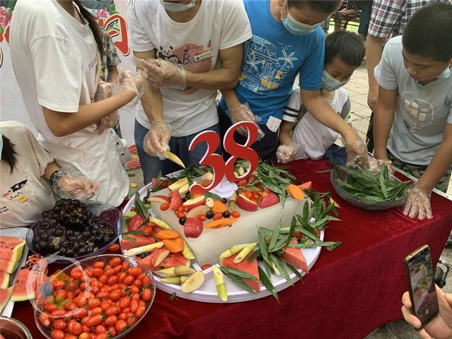 小孩子们戴上手套,用西瓜、苹果、葡萄、小番茄、胡萝卜和竹叶片为“新星”定制了一个大蛋糕,让38岁高龄的新星在重庆的夏天,过了个凉爽的生日。
