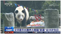 8月16日,我园为38岁的大熊猫“新星”举办了生日会。现场游客、媒体记者及工作人员数百人欢聚一堂,为寿星庆生,祝福它生日快乐、身体健康!