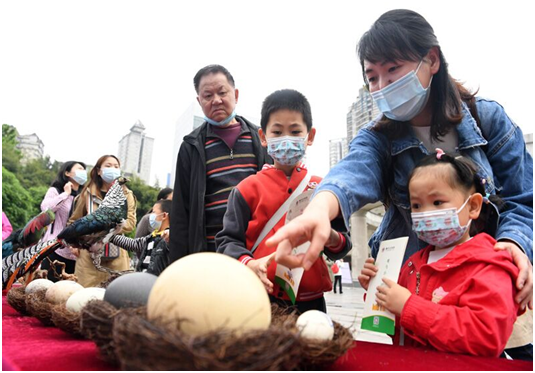 一、爱鸟周互动展示活动。4月10日,爱鸟周活动正式启动,在动物园新大门广场,爱鸟护鸟科普互动展示活动吸引游客纷纷驻足参与,活动多角度、全方位宣传野生鸟类保护知识,受众逾万人次。活动内容包括:(一)“看”--游客通过近距离观看鸟蛋和鸟类标本,感受多姿多彩的鸟类世界;(二)“听”—市民听取鸟类保护法律法规、爱鸟周由来和观鸟小常识等科普展板宣传内容;(三)“问”—鸟类保护专家现场答疑和辨鸟识鸟,解惑“科普三千问”;(四)“画”--科普志愿者手把手教孩子们在鸟蛋模型上绘画,画出心中最美的鸟儿;(五)“送”--互动参与环节,500份观鸟手册有奖发送。