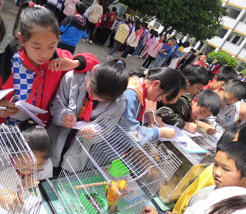 本次活动我园主要通过动物展示、科普教具展示、科普讲解、互动问答四个方面进行。一是动物展示。展出豹纹守宫、鬃狮蜥、苏卡达陆龟、捕鸟蛛、鹩哥、太阳鹦哥等动物,动物种类丰富,趣味性强,同学们近距离观看动物,了解不同种类动物知识。二是科普教具展示。展出各类野生鸟蛋标本、鹿角、虎年科普展板、动物趣味拼图等,同学们认真观察、详细记录、动手感受,更真切地了解动物知识。三是科普讲解。科普老师以两栖爬行动物和鸟类动物为主题,结合科普教具等,为同学们带来一场生动的科普大餐。四是“动物知识”有奖问答。围绕科普课堂,通过问答的形式,进一步提升同学们的动物保护理念。