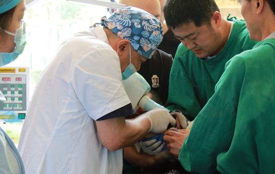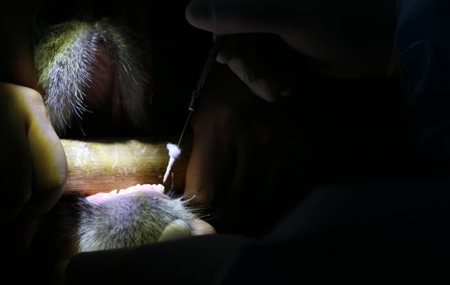 随即我处特邀请锦华口腔医院的缪雷医生团队加入此次幼年大熊猫疾病会诊,诊断结果为牙髓感染并继发根尖周炎。通过双方共同研究和协作,对两只大熊猫牙髓腔内渗出物引流、减压后,实施根管治疗手术。经过持续近3个月的治疗和细心护理,现阶段“星星”和“辰辰”的精神、采食均恢复正常,且未发生二次感染;同时,通过此次口腔X线拍摄检查,进一步确定了大熊猫“星星”和“辰辰”的患牙处已基本恢复。