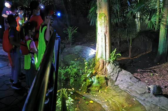 活动独具动物园特色,通过眼观、耳听,动脑、动手等寓教于乐的科普方式开展。科普老师带领学生们夜游园区干道,观林中飞鸟、听狮吼虎啸,体验夜幕下不一样的动物园,并驻足参观综合兽馆,听保育员娓娓道来金猫、云豹昼伏夜出的日常饲养趣事。