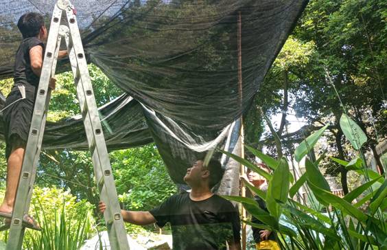 一是强化设施设备保障。全面排查动物饲养管理区域降温设施设备的使用情况,及时补充和修缮,确保高温状态下稳定运行;新添动物喷淋系统,搭建遮阴棚等,改善动物笼舍生存环境。