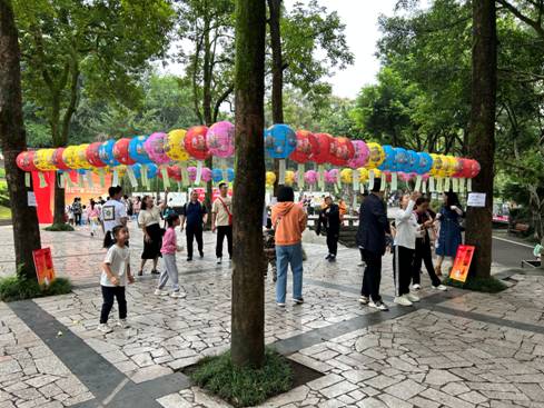 9月29日中秋节当天,我园熊猫馆新馆启动仪式如期举行,梦幻熊猫,喜迎新居,新熊猫馆正式向公众开放。大熊猫入住新居后,游客们除能更近距离地观看大熊猫外,还能品“虫动咖啡”、逛官方文创店“虫动市集”。同时,为营造节日氛围,水禽湖畔主干道设置了中秋灯谜连廊,两侧悬挂五彩灯谜灯笼,游客朋友可以穿行其中,体验解谜乐趣。
