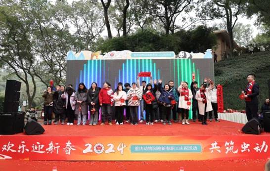 活动当天,现场布置得十分喜庆,充满了浓浓的年味,职工们欢聚一堂,共同参与了内容丰富的庆祝活动。在一对欢快灵动的舞狮表演中活动拉开了帷幕,首先为激励先进弘扬典型,处领导班子对年度优秀饲养员、优秀职工、先进个人和集体进行了表彰。紧接着,时坚处长代表处领导班子致辞,总结过去展望未来,2024年将再接再厉、全力以赴、再创佳绩,并向全体职工致以新春的祝福和诚挚的问候,祝福大家在新的一年里工作顺利、身体健康、阖家幸福!随后大家共同欣赏了一场既有歌曲串烧、舞蹈、杂技、川剧变脸等表演又有劳模宣讲和新员工亮相的高水平联欢会,精彩的表演赢得了在场人员的阵阵掌声,现场气氛高潮迭起,活动中间还穿插了抽奖环节,为职工们送上奖品,让大家在欢乐的氛围中迎接新春的到来。