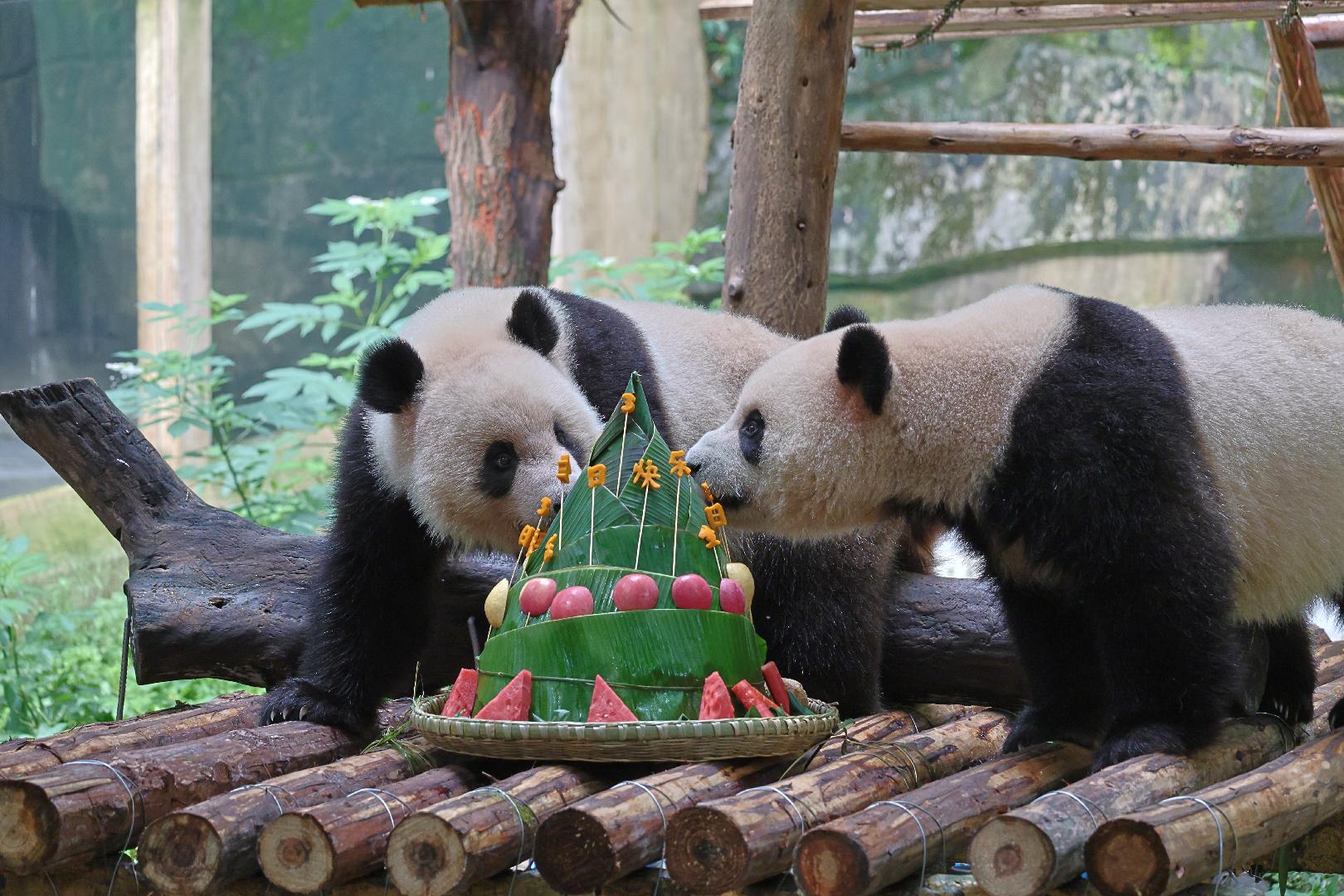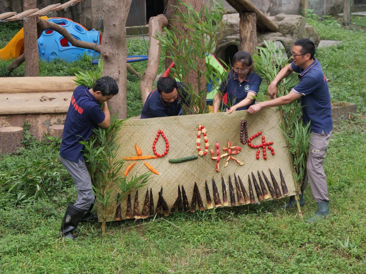 为进一步丰富圈养大熊猫行为多样性,提升重庆动物园大熊猫幸福感,重庆动物园熊猫馆结合“六一”、“端午”及大熊猫生日等时间节点,开展了多系列主题丰容活动,取得了良好的效果。