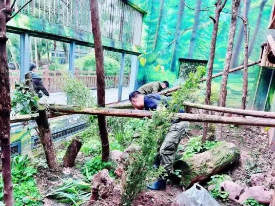 我不仅是阿宅的食堂打饭大叔,也是阿宅的小家建造师。院里的植被一遇阳光总会野蛮生长,枝蔓散布便会压缩阿宅的生活空间。我便与同事们一起帮阿宅打理住所,修剪植被、清理枯叶、栽种苗木。傲娇的阿宅也相当给我面子,每次打理完它的院子后,它都会急吼吼地出来“现场勘验”,一遍遍地巡视它的领地,辗转腾挪,做好气味标记,十分喜欢新环境的样子,我也权当是认可我的劳动成果。