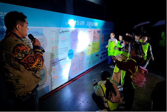 小朋友们驻足于精心设计的科普展板前,结合科普老师的讲解,深入了解长江江豚、中华鲟等珍稀水生生物的生存现状以及面临的威胁,直观感受水生动物多样性对生态系统的重要价值,增强了水生动物保护意识。