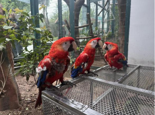 近日,我处成功从成都引进双角犀鸟、花冠皱盔犀鸟等国家一级重点保护野生动物及绯红金刚鹦鹉等珍稀鸟类,共计3种18只,为园区生物多样性保护与协同生态文旅发展注入新活力。